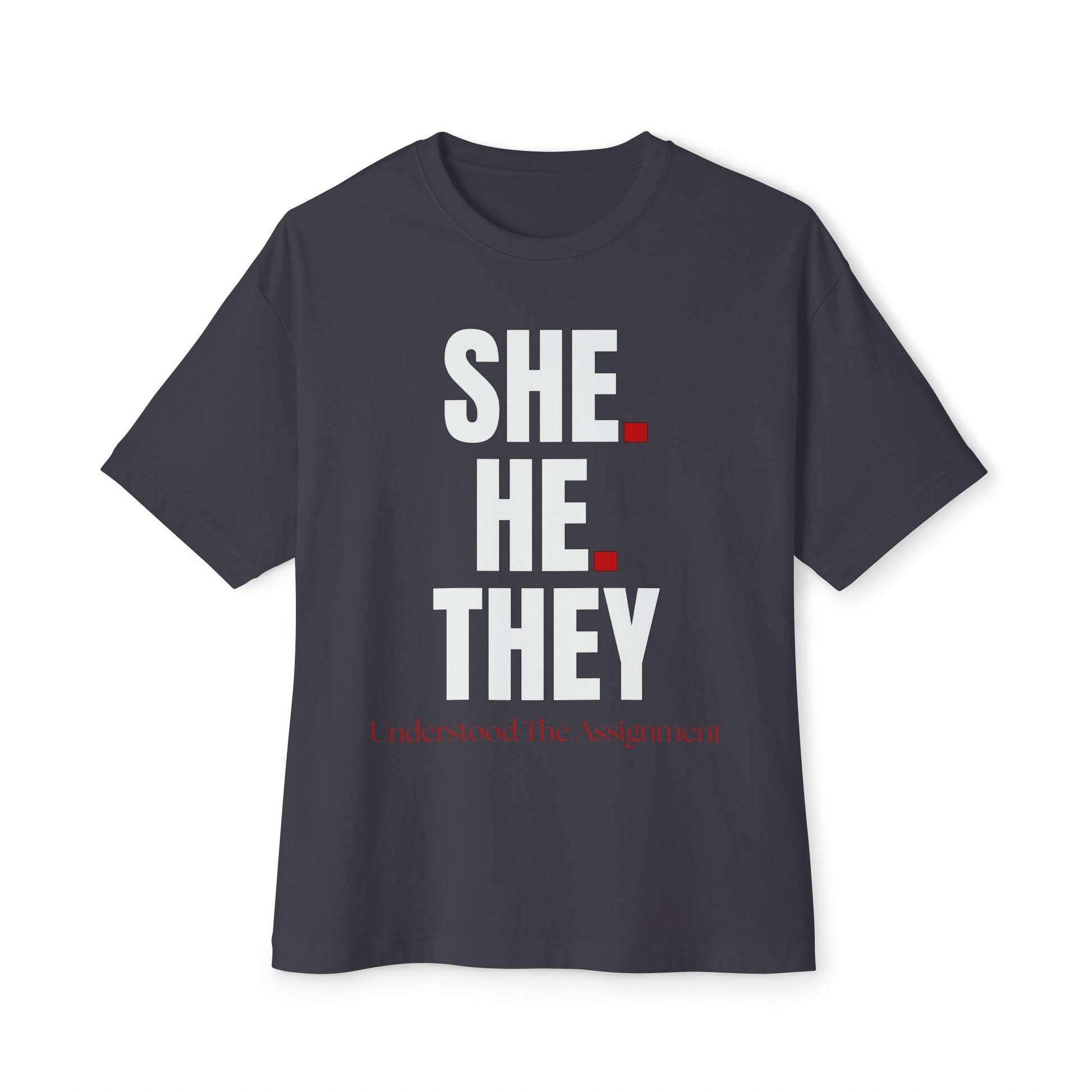 She, He, They - Oversized Tee, Unisex Boxy T-Shirt for Humor Lovers