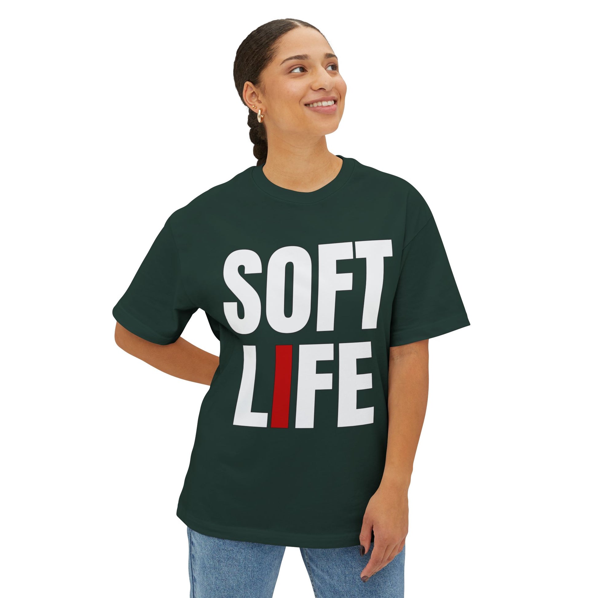 Soft Life Unisex Boxy Tee, Oversized Graphic Shirt, Casual Wear, Street Style, Gifts for Him/Her, Weekend Outfit
